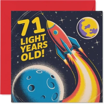 71st Birthday Cards for Women Men Light Years Old Happy Card 71 Year Woman Man Uncle Wife Nan Grandad, 145mm Bday Greeting