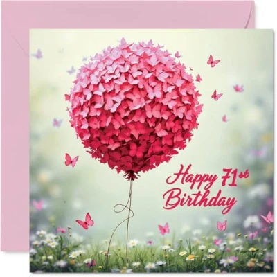 71st Birthday Cards for Women Pink Butterfly Balloon Happy Card 71 Year Old Woman Granny Nan Grandma Nanny, 145mm Bday Greeting