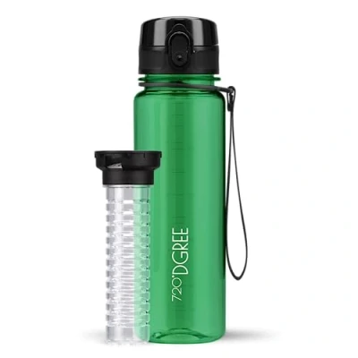 ✔ FINALLY YOU CAN DRINK ENOUGH & FEEL BETTER - You will ALWAYS want to keep your special 720°DGREE bottle by your side. The innovative anti-glug drink opening reduces spills and helps quenching your thirst extreme quickly, while the taste remains 100% pure. Add a special kick to your drinks - thanks to the EXTRA FRUIT INFUSER and a wide mouth (Ø 4.5cm), add either delicious fruits or refreshing ice cubes to your favourite beverages. Made of feather light, yet durable Tritan copolyester. ✔ FEEL THE DIFFERENCE - Modern & minimalist optics: The transparent surface means you always have the fill level of your water bottle in view. Perfect to operate with only one hand, thanks to the 1-KLICK drinking cap. With the carrying strap you always have your bottle at your side. Always drink hygienically thanks to the protection against dirt and dust - the innovative spring system 2.0 ensures that the cap pops open just like on the first day it is opened 1000 times. ✔ TRUST THE ORIGINAL QUALITY - Your #1 water bottle on Amazon with worldwide more than 2000 verified 5-star customer ratings speak volumes. Become a part of the 720°DGREE family and share your unique drinking experience with thousands of enthusiastic fellow customers. Regardless of whether you are a yogi, housewife, biker, manager, bodybuilder or a cross-fitter - everyone wants to have THE uberBottle. ✔ ENVIRONMENT FRIENDLY - Long product life due to our spare parts: www.amazon.co.uk/dp/B07212GGDW With the reusable "uberBottle" you actively reducing waste production of disposable bottles and simultaneously save your hard-earned money. Use your reusable "uberBottle" instead of PET bottles and thus actively reduce your CO2 fingerprint every day. For maximum product durability, best clean by hand. Dimensions: bottle’s Ø 6.2cm, height 20.5cm, lid height 4cm, total height: 23.5cm, weight: 165g. ✔ YOU ARE 100% SATISFIED OR MONEY BACK - Your child's satisfaction is guaranteed! 720°DGREE stands for outstanding CUSTOMER SERVICE with hundreds of thousands of HAPPY CUSTOMERS. If you or your child can't find the "uberBottle" overToll, just send it back within 60 days and we'll refund the full amount - no ifs & buts! Put your premium water bottle in your shopping cart NOW.