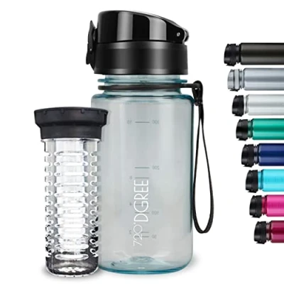 720DGREE Water Bottle Kids “uberBottle“ 350 ml crystalClear +Fruit Infuser BPA Free Tritan, Leakproof, Reusable Drinking Waterbottle for Children, Kindergarten, School, Sport Travel