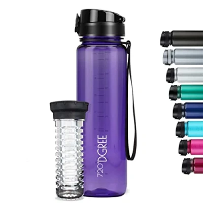 720DGREE Water Bottle “uberBottle“ 1 L crystalClear +Fruit Infuser BPA Free Tritan, Leakproof, Reusable Drinking Sports for Gym, Fitness, Cycling, Travel, Kids, School Office