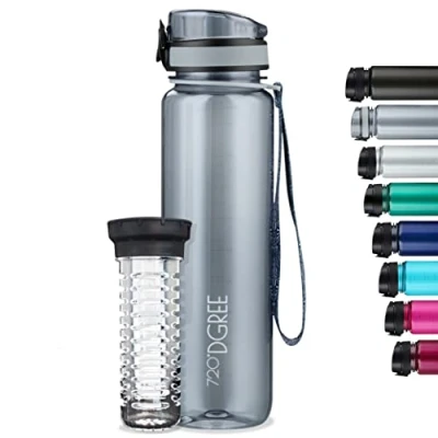 ✔ FINALLY YOU CAN DRINK ENOUGH & FEEL BETTER - You will ALWAYS want to keep your special 720°DGREE bottle by your side. The innovative anti-glug drink opening reduces spills and helps quenching your thirst extreme quickly, while the taste remains 100% pure. Add a special kick to your drinks - thanks to the EXTRA FRUIT INFUSER and a wide mouth (Ø 5.5cm), add either delicious fruits or refreshing ice cubes to your favourite beverages. Made of feather light, yet durable Tritan copolyester. ✔ FEEL THE DIFFERENCE - Modern & minimalist optics: The transparent surface means you always have the fill level of your water bottle in view. Perfect to operate with only one hand, thanks to the 1-KLICK drinking cap. With the carrying strap you always have your bottle at your side. Always drink hygienically thanks to the protection against dirt and dust - the innovative spring system 2.0 ensures that the cap pops open just like on the first day it is opened 1000 times. ✔ TRUST THE ORIGINAL QUALITY - Your #1 water bottle on Amazon with worldwide more than 2000 verified 5-star customer ratings speak volumes. Become a part of the 720°DGREE family and share your unique drinking experience with thousands of enthusiastic fellow customers. Regardless of whether you are a yogi, housewife, biker, manager, bodybuilder or a cross-fitter - everyone wants to have THE uberBottle. ✔ ENVIRONMENT FRIENDLY - Long product life due to our spare parts: www.amazon.co.uk/dp/B07212GGDW With the reusable "uberBottle" you actively reducing waste production of disposable bottles and simultaneously save your hard-earned money. Use your reusable "uberBottle" instead of PET bottles and thus actively reduce your CO2 fingerprint every day. For maximum product durability, best clean by hand. Dimensions: bottle’s Ø 7.8cm, height 25.8cm, lid height 4.3cm, total height: 28.5cm, weight: 225g. ✔ YOU ARE 100% SATISFIED OR MONEY BACK - Your child's satisfaction is guaranteed! 720°DGREE stands for outstanding CUSTOMER SERVICE with hundreds of thousands of HAPPY CUSTOMERS. If you or your child can't find the "uberBottle" overToll, just send it back within 60 days and we'll refund the full amount - no ifs & buts! Put your premium water bottle in your shopping cart NOW.