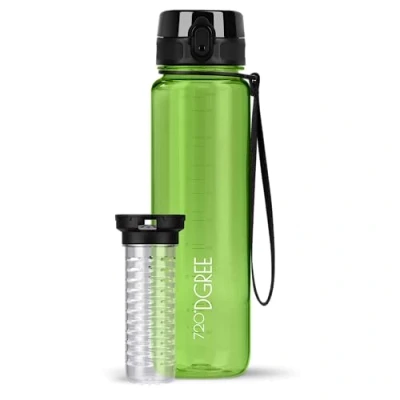 720DGREE Water Bottle “uberBottle“ 1 L crystalClear +Fruit Infuser BPA Free Tritan, Leakproof, Reusable Drinking Sports for Gym, Fitness, Cycling, Travel, Kids, School Office