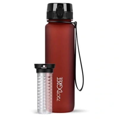 Amazon Keep yourself hydrated wherever you go this 720 DGREE 1000ml Water Bottle Leakproof 1-KLICK cap with a 2.0 spring system to seamlessly open and close Anti-glug opening to quickly quench your thirst without any leaks or spillages Removable fruit infuser and wide mouth (5.5cm) to easily flavour with fruit or ice BPA-free Tritan material with a soft-touch coating for ultimate impact-resistance