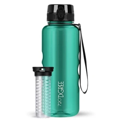 720DGREE Water Bottle “uberBottle“ 1.5 L crystalClear +Fruit Infuser BPA Free Tritan, Leakproof, Reusable Drinking Sports for Gym, Fitness, Hiking, Travel, School, Office