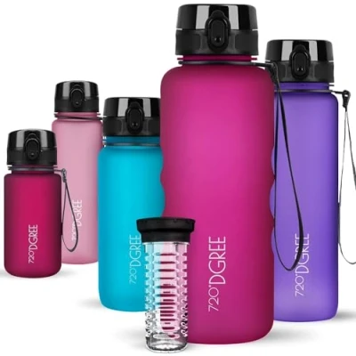 720DGREE Water Bottle “uberBottle“ 1.5 L softTouch +Fruit Infuser BPA Free Tritan, Leakproof, Reusable Drinking Sports for Gym, Running, Fitness, Hiking, Travel, School, Office