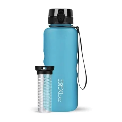 ✔ FINALLY YOU CAN DRINK ENOUGH & FEEL BETTER - You will ALWAYS want to keep your special 720°DGREE bottle by your side. The innovative anti-glug drink opening reduces spills and helps quenching your thirst extreme quickly, while the taste remains 100% pure. Add a special kick to your drinks - thanks to the EXTRA FRUIT INFUSER and a wide mouth (Ø 5.5cm), add either delicious fruits or refreshing ice cubes to your favourite beverages. Made of feather light, yet durable Tritan copolyester. ✔ FEEL THE DIFFERENCE - The special velvety coating provides an extraordinary sensation upon touch, while the modern & minimalistic look delights your eyes. Dead easy to use on the go - with just one hand thanks to the the 1-CLICK drinking cap. The functional, elegant strap allows you to carry your bottle with you at all times. Say NO to dirt or dust entering your bottle. ✔ TRUST THE ORIGINAL QUALITY - Your #1 water bottle on Amazon with worldwide more than 2000 verified 5-star customer ratings speak volumes. Become a part of the 720°DGREE family and share your unique drinking experience with thousands of enthusiastic fellow customers. Regardless of whether you are a yogi, housewife, biker, manager, bodybuilder or a cross-fitter - everyone wants to have THE uberBottle. International products have separate terms, are sold from abroad and may differ from local products, including fit, age ratings, and language of product, labeling or instructions.