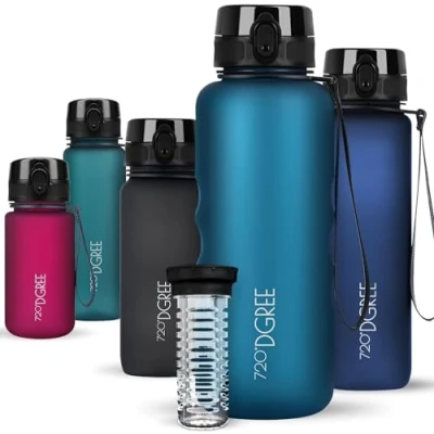 ✔ HYDRATE - YOU FINALLY ENOUGH AND FEEL - BETTER - ALWAYS KEEP YOUR 720°DGREE BOTTLE ON YOU. The innovative anti-splash drinking opening helps quench your thirst very quickly - and the taste remains 100% pure. Perfect your drinks by adding fruit or ice cubes, thanks to the EXTRA FRUIT INFUSEUR and the large opening (Ø 5.5 cm). Made of very light and durable Tritan copolyester, of course free of BPA, BPS, and phthalates ✔ FEEL THE DIFFERENCE - The special satin coating feels incredibly pleasant to the touch - while being modern and minimalist in appearance. Perfect for one-handed use on the way, thanks to the 1 CLIC neck. Always drink hygienically thanks to the protection against dust and dirt. The new 2.0 spring system ensures that even after a thousand openings, the closing valve works as it was on the first day ✔ TRUST ORIGINAL QUALITY - Your #1 bottle on Amazon. More than 50,000 verified reviews with 5 stars worldwide speak for themselves. Enter the 720°DGREE family of thousands of enchanted customers. Whether it's a yogi, stay-at-home mom, manager or crossfitter, EVERYONE wants their uberBottle. ✔ RESPECT TO OUR ENVIRONMENT - Longer service life thanks to replaceable wear parts - With the uberBottle reusable bottle, you can actively help reduce the waste generation of disposable bottles - while saving money at the same time. To extend the service life to the maximum, it is best to wash it by hand. Dimensions: bottle diameter 10 cm x height 26 cm, lid height 4.2 cm, total height: 28.2 cm, weight 265 g ✔ YOU WILL BE 100% SATISFIED OR REFUNDED - Your satisfaction is guaranteed! 720°DGREE represents excellent customer service, and has thousands of satisfied customers. If you should not absolutely love your uberBottle, simply return it to us within 60 days and we'll refund the full price, no questions asked! Place your premium water bottle in your cart now!