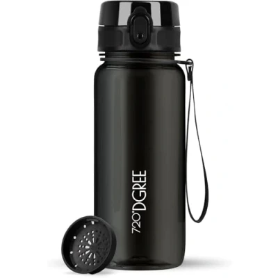 720DGREE Water Bottle “uberBottle“ 650 ml crystalClear +Fruit Infuser BPA Free Tritan, Leakproof, Reusable Drinking Sports for Gym, School, Fitness, Cycling, Travel, Office