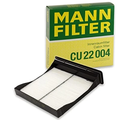 MANN-FILTER Cabin Air Filter CU 22 004 / Dimensions (mm): A = 219; B = 235; H = 58 / Premium Filter in Original Equipment Quality High-quality MANN-FILTER cabin filters offer almost 100% protection against particles such as pollen, diesel soot and tyre abrasion - for a feel-good climate in the vehicle interior and protection of the air conditioning system Exact fit and perfect tightness ensure constant filtration performance during the entire service interval / Optimum vehicle interior ventilation due to the high air flow capacity Looking to find the correct filter? Select: brand, model, vehicle type, and engine type above to see which one fits your vehicle MANN+HUMMEL complies with REACH-regulation + supports the goal of Improved health and safety through the design, manufacturing, usage, disposal and recycling of our products