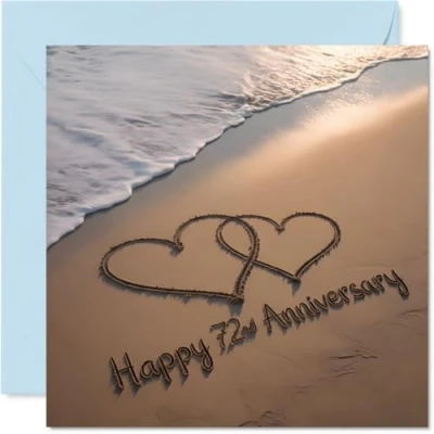 72nd Anniversary Card for Women Men Love on the Ocean Shore Happy 72 Year Companion Wife Partner Husband, 145mm Wedding Anniversaries Greeting Cards