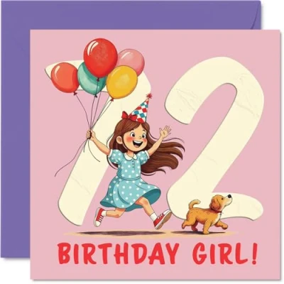 72nd Birthday Cards for Women Balloon Girl Happy Card 72 Year Old Woman Nan Cousin Granny Grandma, 145mm Bday Greeting