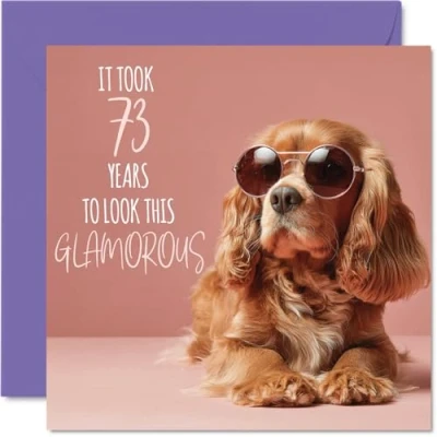 73rd Birthday Cards for Women Glamorous Puppy Happy Card 73 Year Old Woman Nan Granny Auntie Nanny, 145mm Bday Greeting