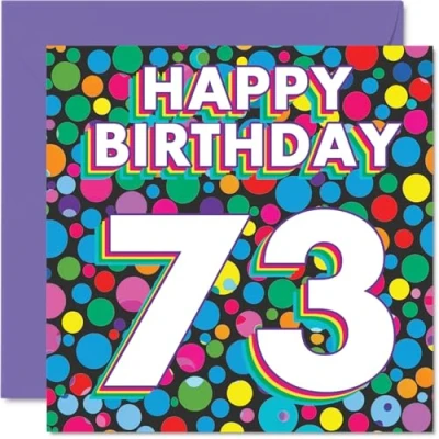 73rd Birthday Cards for Women Men Funky Rainbow Dots Happy Card 73 Year Old Woman Man Brother Auntie Cousin Uncle, 145mm Bday Greeting