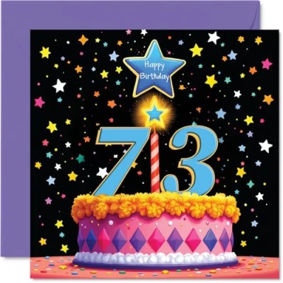 73rd Birthday Cards for Women Men Pink Cake & Stars Happy Card 73 Year Old Woman Man Wife Cousin Sister Brother, 145mm Bday Greeting