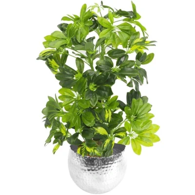 75cm Artificial Arboricola Gold Capella Plant Silver Metal Planter