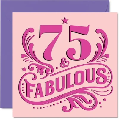 75th Birthday Cards for Women Fabulous Happy Card 75 Year Old Woman Grandma Auntie Cousin Sister, 145mm Bday Greeting