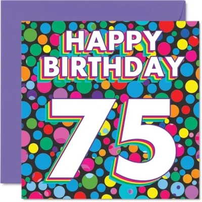 75th Birthday Cards for Women Men Funky Rainbow Dots Happy Card 75 Year Old Woman Man Sister Nanny Auntie Brother, 145mm Bday Greeting