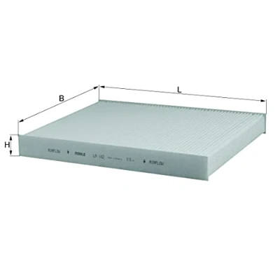 Filter type: Particulate Filter; Length: 280 mm; Width: 217 mm; Height: 30 mm; Vehicle linkage: Audi, Porsche, VW MAHLE cabin filters ensure a continuous supply of purified air for drivers and passengers, enhancing health, comfort, and concentration—when air quality is compromised by smog or elevated pollen. Optimized pleat geometry contributes to extended service life, minimizes flow resistance to reduce blower load, and ensures a precise fit that prevents bypass air. To prevent potential damage to the air conditioning or heating system, cabin filters should always be replaced according to the intervals specified by the vehicle manufacturer. As a general guideline, replacement is recommended every 15,000 to 20,000 km or once a year. As a globally recognized development partner and leading supplier to the automotive industry, MAHLE serves customers in both passenger car and commercial vehicle segments.