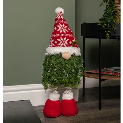 General description Bring home the festive spirit this year with this Christmas Gonk featuring a red snowflake hat and extendable legs. This stylish Gonk, designed in the style of a Christmas tree, is an ideal addition to your indoor space and is suitable for most flat surfaces. These curious little creatures are said to take a liking to houses in the colder seasons, and if treated well, they offer protection and bring good luck within the home. With extendable legs, the Gonk reaches a height of up to 76cm, adorned with a hat in a red and white snowflake design, complemented by red berries and seasonal foliage. It is perfect for adding warm finishing touches to your Christmas decor or as a companion gift for someone special this Christmas. Technical specifications Total Height: 76cm (fully extended) Length: 19cm Other information Material is surface washable only. Suitable for indoor use only.
