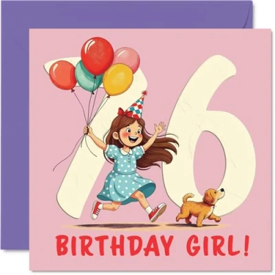 76th Birthday Cards for Women Balloon Girl Happy Card 76 Year Old Woman Auntie Nanny Wife Sister, 145mm Bday Greeting