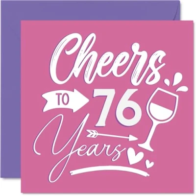 76th Birthday Cards for Women Cheers Happy Card 76 Year Old Woman Auntie Nanny Wife Sister, 145mm Bday Greeting