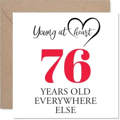 76th Birthday Cards for Women Men Young at Heart Happy Card 76 Year Old Woman Man Husband Wife Sister Brother, 145mm Bday Greeting