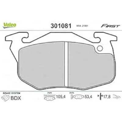 SPECIFICATIONS: Fitting Position: Front axle, Brake system: BENDIX, WVA number: 21061; DIMENSIONS (in mm): Width: 105, Height: 53,4, Thickness: 18 PREMIUM QUALITY: Our brake pads have the same quality standards as the original parts in order to ensure durability and performance THE SAFETY CHOICE: The perfect balance between efficiency, durability and price to offer optimal braking experience even in difficult conditions HEALTH AND SAFETY: Our brake pads are asbestos- and copper-free; they are also certified ECE-R90 in order to comply with European regulations VALEO QUALITY: Since 1923, Valeo accumulated a long experience as a Braking specialist to offer you confort, safety and sustainability