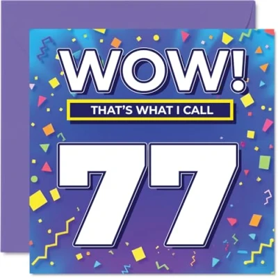 77th Birthday Cards for Women Men WOW Thats What I Call Happy Card 77 Year Old Woman Man Uncle Brother Grandad Sister, 145mm Bday Greeting