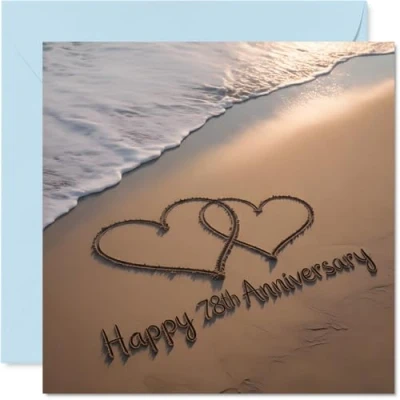 78th Anniversary Card for Women Men Love on the Ocean Shore Happy 78 Year Partner Husband Companion Wife, 145mm Wedding Anniversaries Greeting Cards