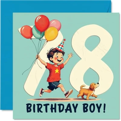 78th Birthday Cards for Men Balloon Boy Happy Card 78 Year Old Man Husband Dad Uncle Grandad, 145mm Bday Greeting
