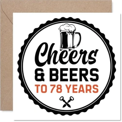 78th Birthday Cards for Men Cheers & Beers Happy Card 78 Year Old Man Husband Dad Uncle Grandad, 145mm Bday Greeting
