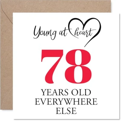 78th Birthday Cards for Women Men Young at Heart Happy Card 78 Year Old Woman Man Nanny Uncle Wife Husband, 145mm Bday Greeting