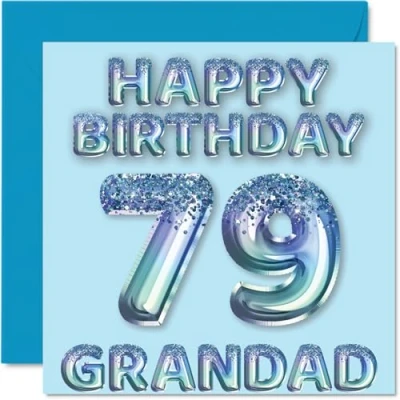 79th Birthday Card for Grandad Blue Glitter Party Balloons Happy Cards 79 Year Old from Grandson Granddaughter, 145mm x Bday Greeting Gift