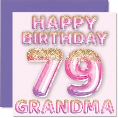 79th Birthday Card for Grandma Pink & Purple Glitter Balloons Happy Cards 79 Year Old from Grandson Granddaughter, 145mm x Bday Greeting Gift
