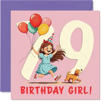 79th Birthday Cards for Women Balloon Girl Happy Card 79 Year Old Woman Granny Nan Grandma Nanny, 145mm Bday Greeting
