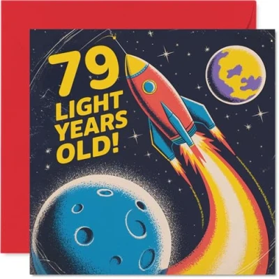 79th Birthday Cards for Women Men Light Years Old Happy Card 79 Year Woman Man Dad Grandma Brother Nanny, 145mm Bday Greeting