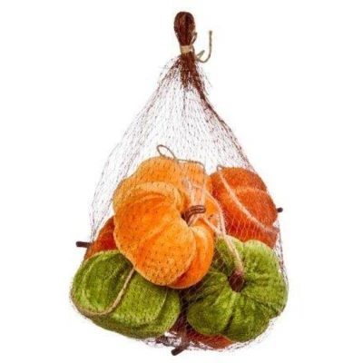 7Pc Velvet Plush Pumpkins 8cm Rustic Orange & Green Mini Fall Halloween Thanksgiving Home Styling cute Displays