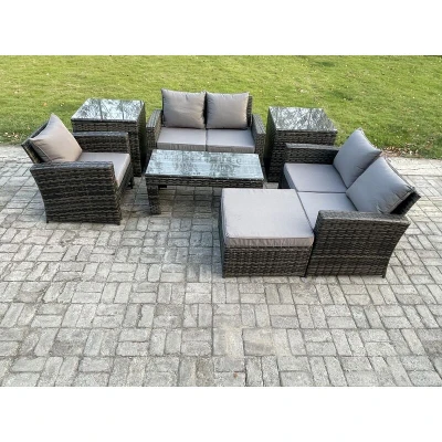 7pcs Rattan Outdoor Garden Furniture Sofa Set with Coffee Table 2 Side Tables Big Footstool Dark Grey Mixed Fimous