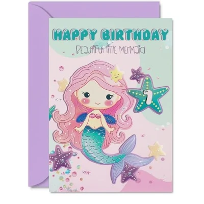 7th Birthday Card Girl Beautiful Little Mermaid Happy for 7 Year Old Girl, Age Girls Cards, A5 Bday Greeting