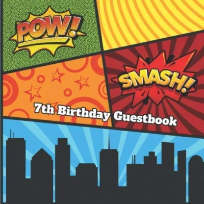 7th Birthday Guestbook: Superheroes Party Guest Book Celebration Log for Signing and Leaving Special Messages