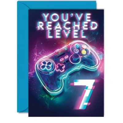 7th Gamer Birthday Cards for Boys Girls You've Reached Level 7 Happy Card Son Daughter Nephew Niece Grandson, 5x7 Inch Seven Seventh Bday Video Game Greeting