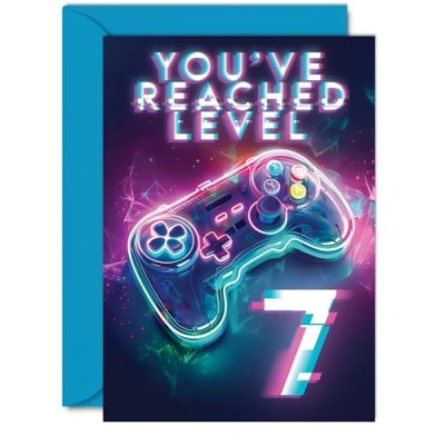 7th Gamer Birthday Cards for Boys Girls You've Reached Level 7 Happy Card Son Daughter Nephew Niece Grandson, A5 Seven Seventh Bday Video Game Greeting