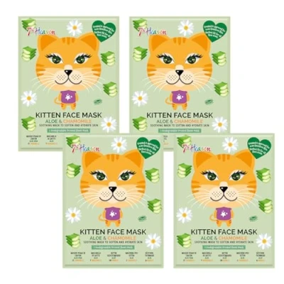 4 FAB FACE MASKS TO SOOTH & HYDRATE - Take a 'paws' with 7th Heaven face masks and treat your skin. These playful, kitten-printed sheet masks for children are packed with a blend of chamomile and aloe vera to soothe, hydrate and moisturise PERFECT FOR PARTIES & SLEEPOVERS - Bright, fun, and creative, 7th Heaven moisturising face masks are an exciting way to introduce kids aged 8 and up to skincare. Gentle yet effective, they're ideal for parties, sleepovers, or as a playful gift SUITABLE FOR SENSITIVE SKIN - This face mask set is gentle enough for even the most delicate skin, making it fun and safe for everyone! Just pop on a mask, kick back, and let it work its magic—hydrating your skin for a soft, radiant glow 4 FUN & PLAYFUL MASKS - Get ready for a magical adventure with these biodegradable sheet masks. Designed to fit all face sizes perfectly and bursting with plant-powered goodness, they make pampering both fun and refreshing GENUINE 7TH HEAVEN SKINCARE – For over 30 years, 7th Heaven has made the world a happier place for both humans & animals. Their cruelty-free beauty products are inspired by nature’s treasures, with no hidden nasties, just pure goodness