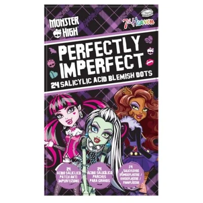 24 BLEMISH-BUSTING HYDROCOLLOID PATCHES - Infused with Salicylic Acid, these spooktacular blemish patches draw out oils and impurities while Zinc reduces inflammation and redness. Get ready to embrace your freaky side and unveil monsterific skin FIERCELY FUN DESIGNS – With six fangtastic Monster High designs, these patches celebrate your uniqueness and monster power! Whether you’re embracing a fresh-faced look or going all out glam, these acne patches help you slay breakouts, day or night TACKLE MULTIPLE BREAKOUTS - Each pack contains 24 creeptastic spot patches, making it easy to tackle multiple blemishes at once. Perfect for on-the-go touch-ups, you can embrace clearer skin and say goodbye to stubborn spots with every dot CONVENIENT & MESS-FREE – Simply cleanse and dry your face, apply the spot stickers, and let them work their magic overnight (7-8 hours). In the morning, gently peel off. Need extra help? Simply reapply the next evening for continued clarity GENUINE 7TH HEAVEN SKINCARE – For over 30 years, 7th Heaven has made the world a happier place for both humans & animals. Their cruelty-free beauty products are inspired by nature’s treasures, with no hidden nasties, just pure goodness