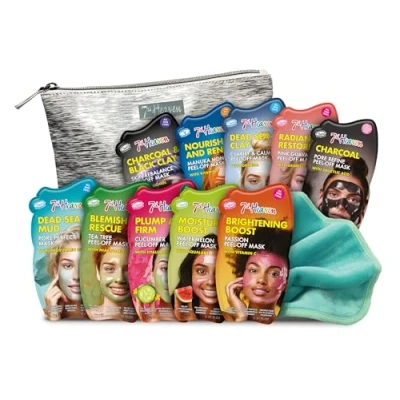 DEEP CLEANSING & MOISTURISING FACE MASK SET – Get ready for endless pampering possibilities with this luxurious skincare gift set. Featuring 10 cream and peel off face masks, it’s formulated to cleanse and hydrate, leaving your skin glowing INCLUDES SILVER MAKE-UP BAG & CLOTH - The chic silver make-up bag adds a touch of glamour, making it perfect for on-the-go beauty, while the cleansing face cloth ensures a thorough, gentle cleanse every time (cloth colour & mask type may vary) A PERFECT PAMPER GIFT SET – Discover the best of 7th Heaven with this face mask beauty set. Packed with top-notch skincare treats, it’s ideal for gifting. Get ready to start your skincare party and enjoy a radiant, revitalised complexion CONVENIENT & MESS-FREE – Simply apply one of these facial masks to dry, cleansed skin avoiding the delicate eye area. Relax and leave it to work its magic for 15-20 minutes, then either rinse or peel off to reveal more nourished skin GENUINE 7TH HEAVEN SKINCARE SET – For over 30 years, 7th Heaven has made the world a happier place for both humans & animals. Their cruelty-free beauty products are inspired by nature’s treasures, with no hidden nasties, just pure goodness