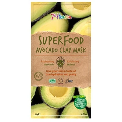7th Heaven Superfood Avocado Clay Mask by, Brightening and Exfoliating with Walnut for a Deep Pore Cleanse Suitable All Skin Types, 10 g