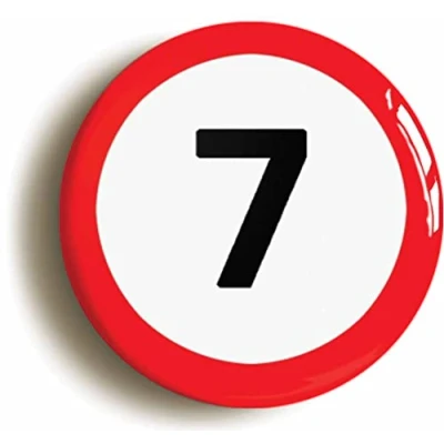 7TH SEVENTH BIRTHDAY MPH ROAD SIGN BADGE BUTTON PIN (Size is 2inch/50mm diameter)