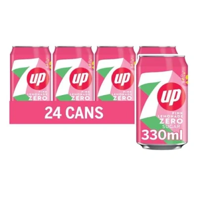 7UP Zero Pink Lemonade, 330ml can (Pack of 24)