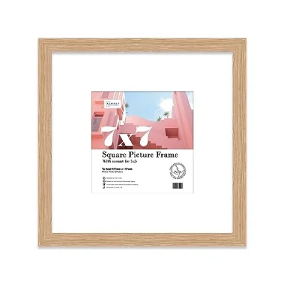 7x7 Oak Picture Frame with Mount for 5x5 Photos, Prints Modern Square Wall Frame, 1 Pack